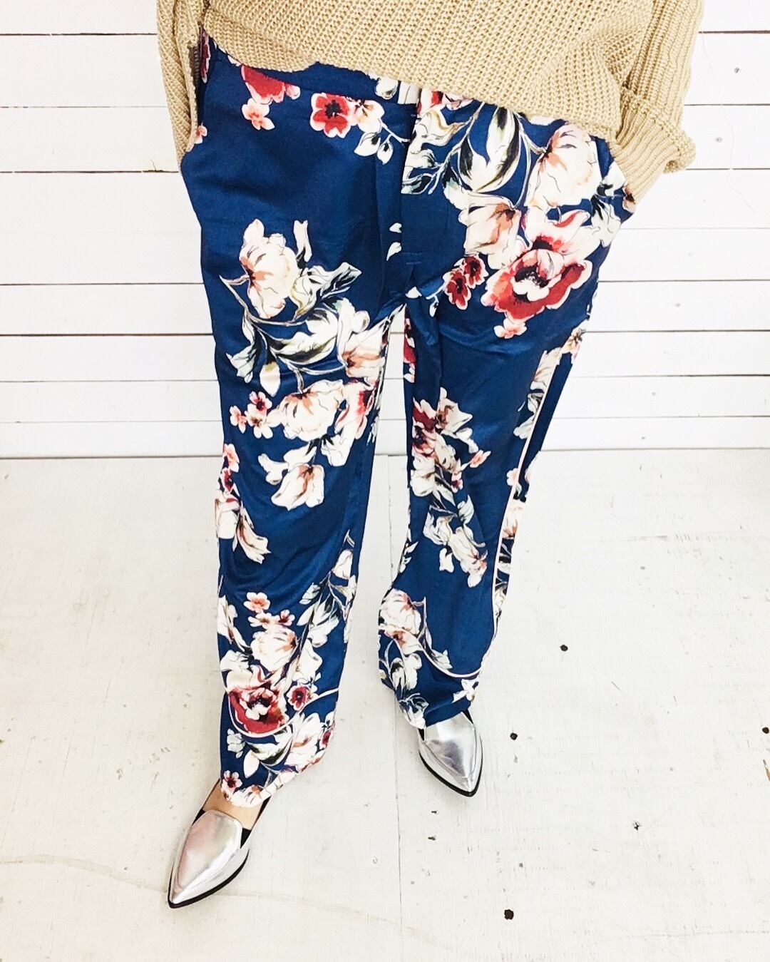 実は合わせやすいシルバーのフラットシューズ!