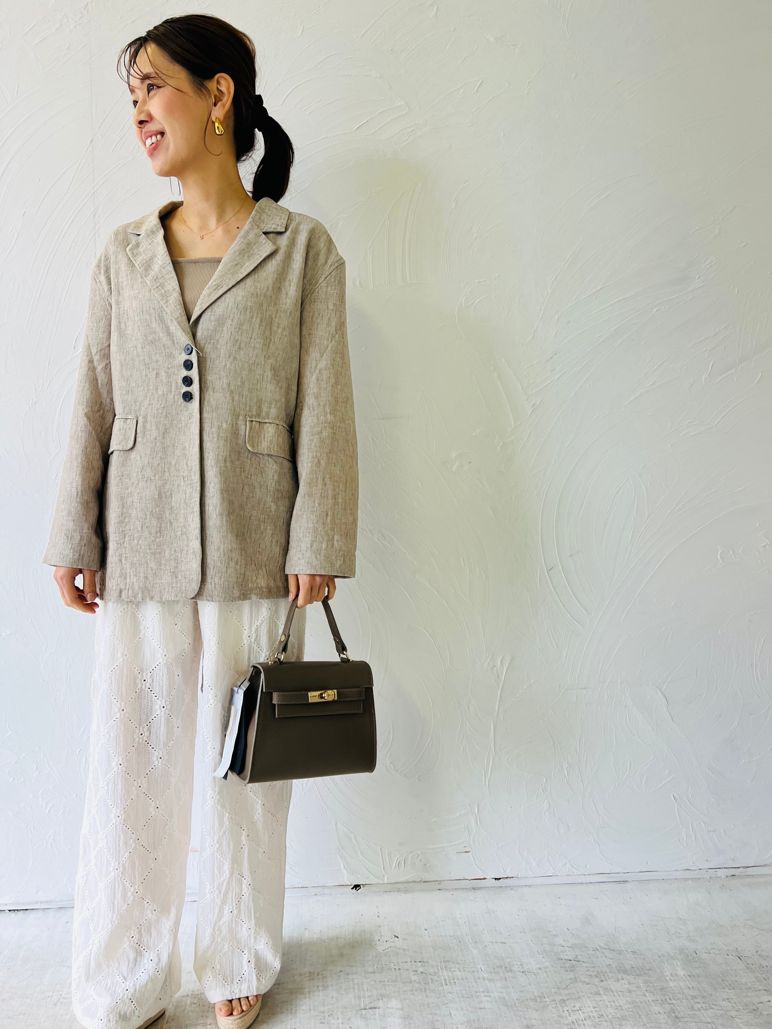 サマージャケットは、麻5%入りの素材を使用しており、軽やかで快適な着心地が魅力です!暑い季節でも涼しく過ごせるので、さまざまなシーンで活躍すること間違いなしです♡