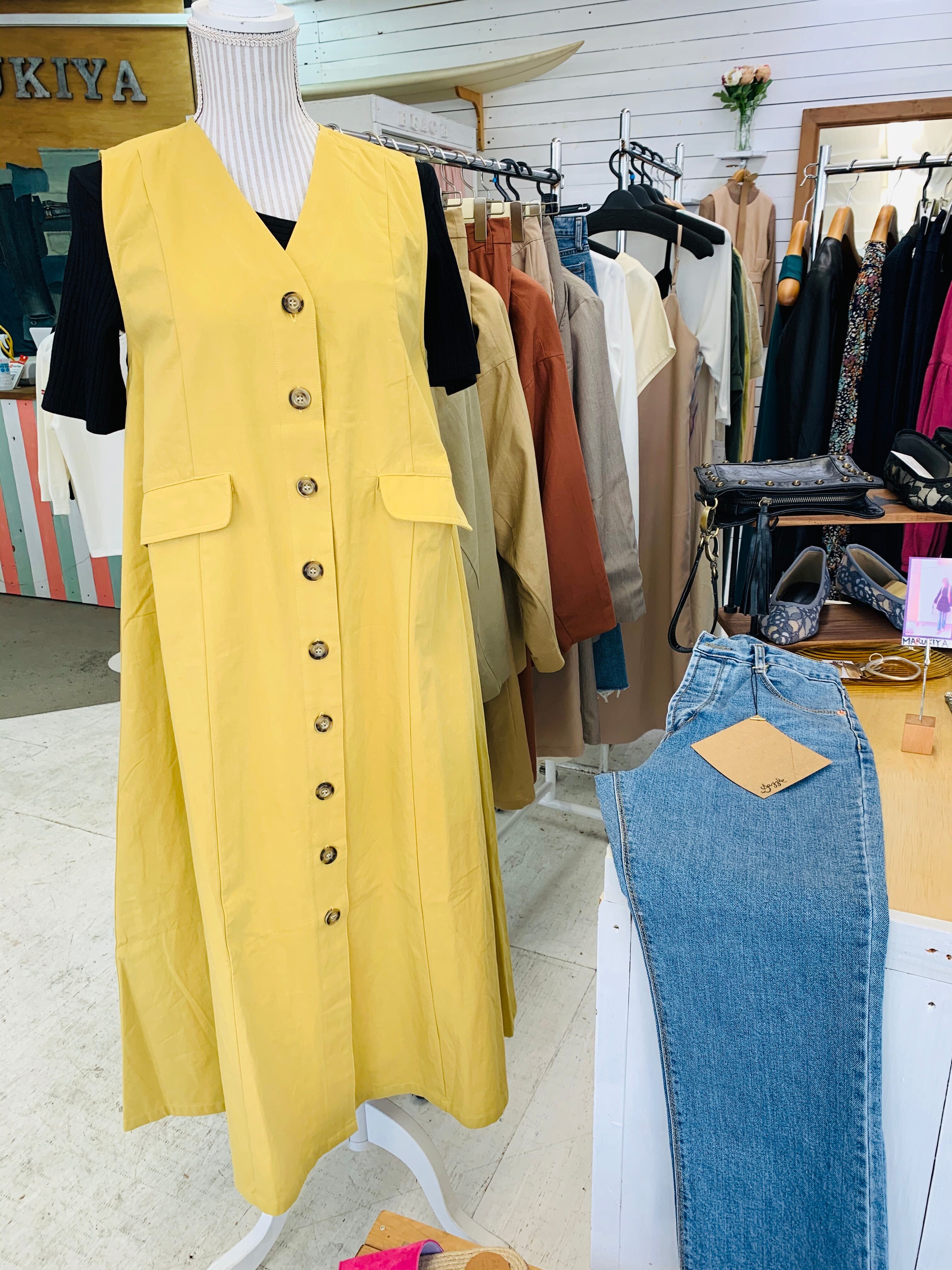 透けないので、1枚でワンピースとしても可愛いし、ボタンを開けてベストで使用してもおしゃれです♡