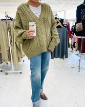 Vカットボリュームニット