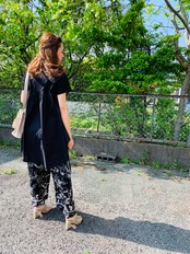 珍しいデザインのワイドパンツは、さらっと着るだけでもかっこよくきまります