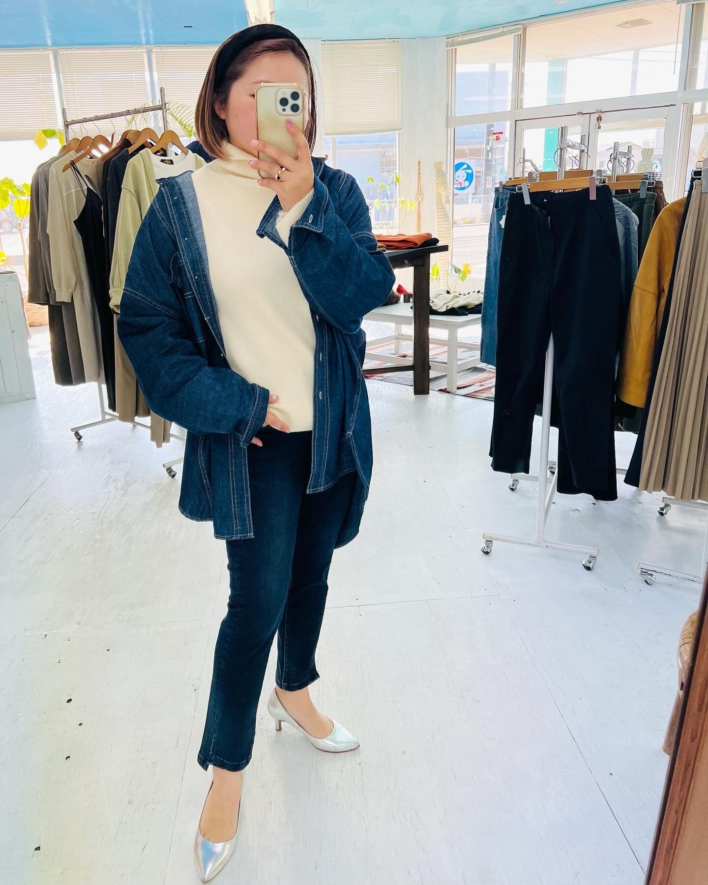 色とゆるさと、シンプルなデニムシャツなのに、目をひいた一枚♡